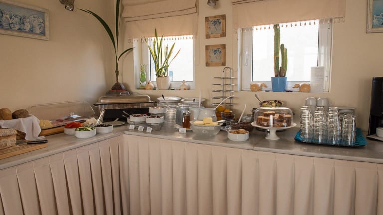 Wir servieren Frühstück auf der Basis von frischen, lokalen Rohstoffen mit einer griechischen, nahöstlichen Atmosphäre, die unsere Gäste zu den lebhaften Märkten im Freien Griechenlands bringt, ohne weit weg vom Meer und der Ruhe des Meeres zu wandern. An einzelnen Abenden servieren wir auf dem Dach des Hotels ein Grillabendessen, das ebenfalls aus den frischesten und leckersten Zutaten der Region zubereitet wird. Auf dem Dach des Hotels mit malerisch perfekter Aussicht, Pool und Whirlpool finden Sie eine Cocktailbar, in der sowohl lokale als auch internationale Getränke serviert werden.