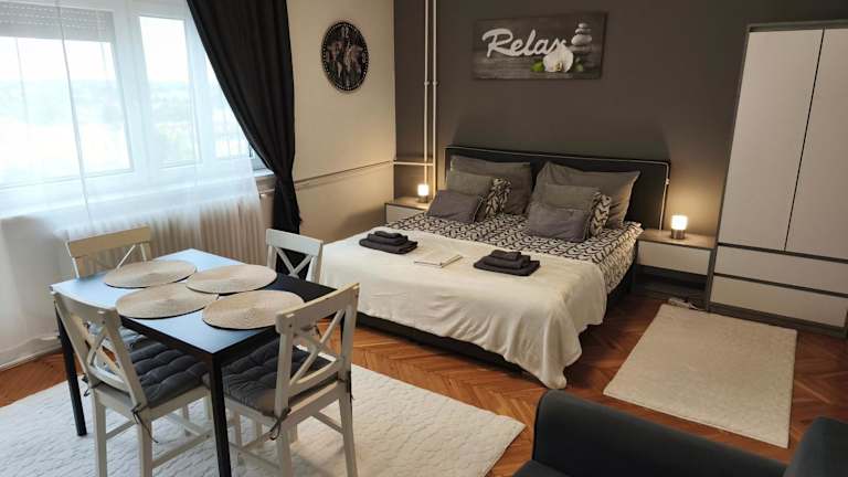 Bálint Apartman bietet Übernachtungsmöglichkeiten mit kostenlosem Wifi und Klimaanlage. Die helle und modern eingerichtete Ferienwohnung ist ideal für einen Städteurlaub.