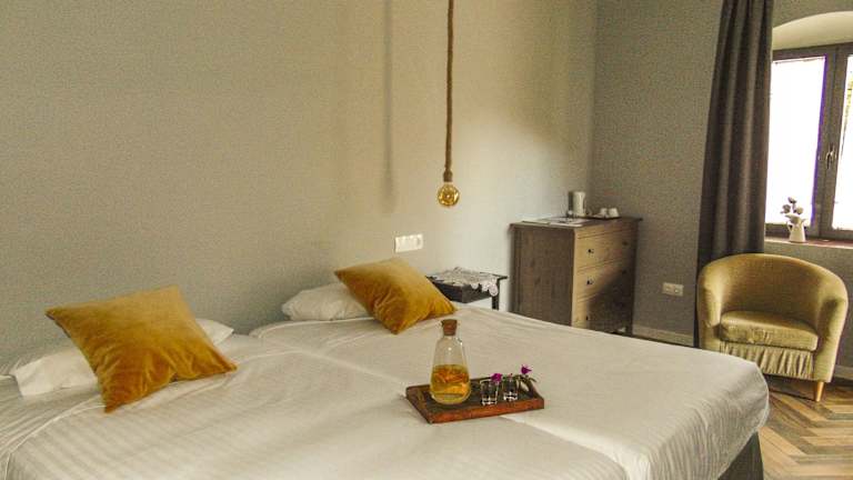 Die Zimmer sind komfortabel eingerichtet und verfügen über ein Doppelbett sowie ein Sofabett. Weitere Annehmlichkeiten sind eine Klimaanlage, Heizung, ein Fernseher, ein Telefon, und eine Minibar. WLAN steht kostenlos zur Verfügung. Die Badezimmer sind mit Dusche und Badewanne ausgestattet.