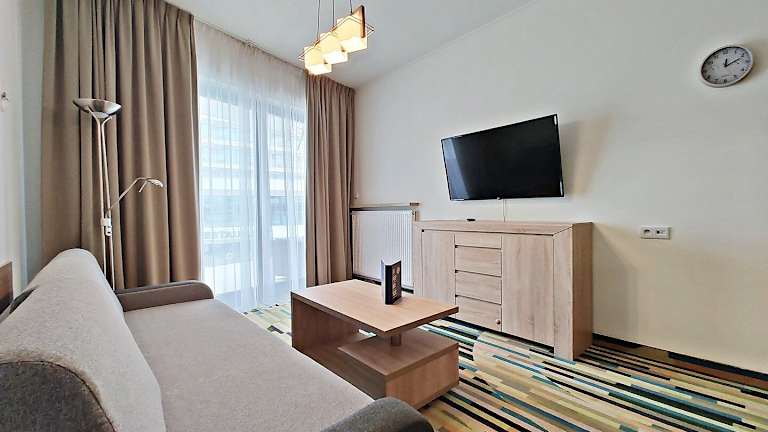 Die Wohneinheiten im Baltic Home Molo sind komfortabel eingerichtet und verfügen über ein Schlafsofa, einen Sitzbereich und einen Flachbild-Kabel-TV. Jede Einheit hat auch eine gut ausgestattete Küchenzeile mit einem Essbereich, so dass Sie Ihre eigenen Mahlzeiten zubereiten können. Das private Badezimmer ist mit einem Haartrockner ausgestattet. Einige Unterkünfte bieten zudem eine Terrasse oder einen Balkon mit Stadtblick.