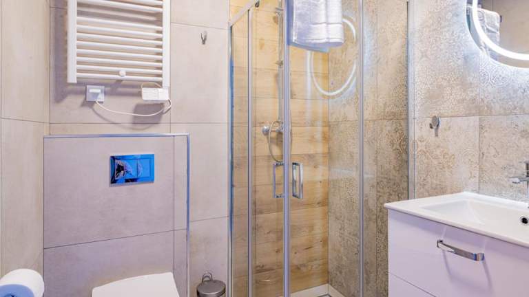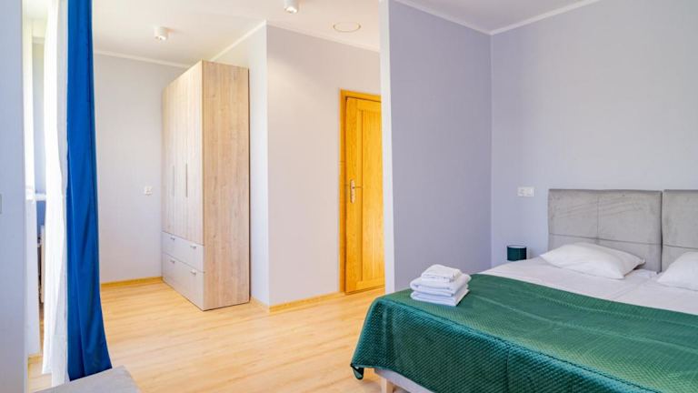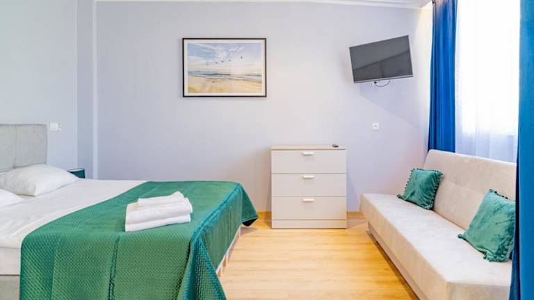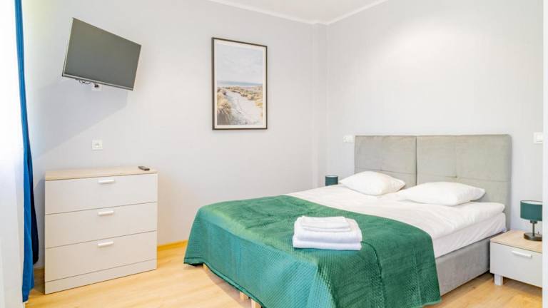 Die Zimmer im Baltic Sport sind ausgestattet mit einem Kleiderschrank, einem Flachbild-TV, einem eigenen Badezimmer, Bettwäsche und Handtüchern.