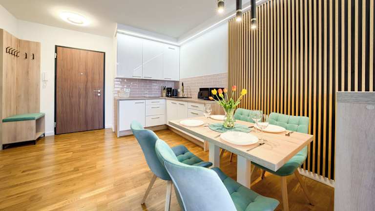 Jede Wohneinheit verfügt über einen Balkon sowie eine Küchenzeile mit Kühlschrank und Essbereich. Des Weiteren sind die Zimmer mit einem Flachbild-TV und einem eigenen Badezimmer mit Dusche und Haartrockner ausgestattet. Eine Herdplatte, ein Geschirrspüler und ein Toaster gehören ebenfalls zur Ausstattung der Zimmer.