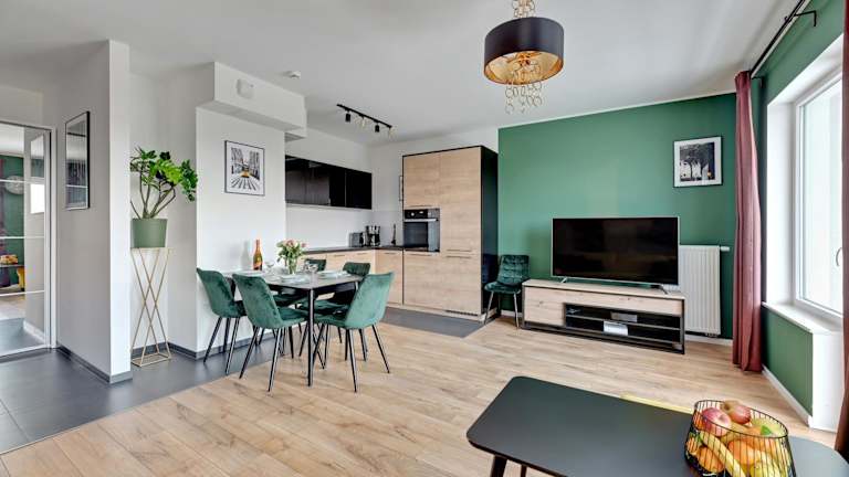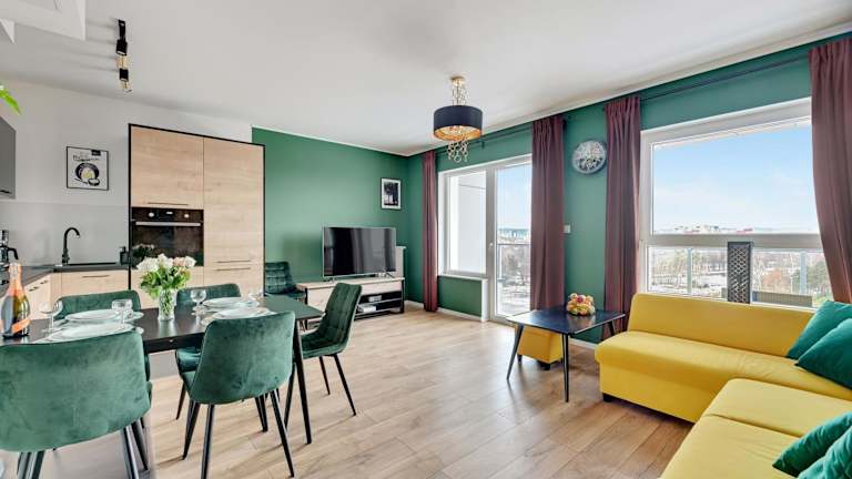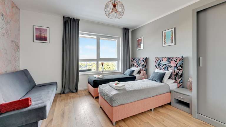 Das Baltica Panorama View by TriApart bietet Übernachtungsmöglichkeiten in einer Ferienwohnung mit Terrasse. Die Unterkunft verfügt über ein helles Wohnzimmer, 2 Schlafzimmer sowie eine gut ausgestattete Küche. W-Lan ist kostenlos verfügbar.