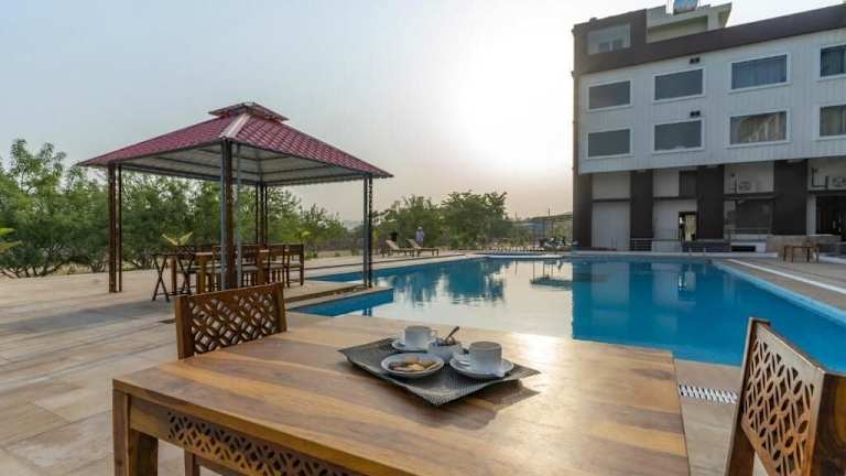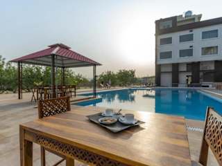 Bamboo Saa Mulberry Resort Pushkar besticht durch ein modernes Design und eine heimelige Atmosphäre. Die Übernachtungsmöglichkeiten umfassen klimatisierte Zimmer mit kostenlosem Wifi, einem eigenen Badezimmer sowie Einrichtungen wie einem Flachbild-TV und einem Wasserkocher. Für die Gäste stehen ein schöner Aussenpool, ein Fitnesscenter und ein Garten zur Verfügung.