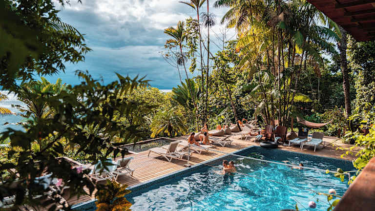 Die Bambuda Lodge liegt im tropischen Regenwald in Bocas del Toro und bietet eine schöne Umgebung mit einem Korallenriff am Kai sowie einen Pool mit Bar. Die Unterkunft befindet sich in einer unterhaltsamen und geselligen Atmosphäre, ideal für aktive Ferien.