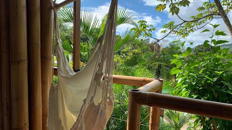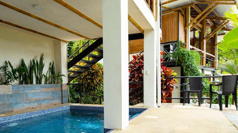 Die Unterkunft Bambura Hermosa Villas befindet sich in Uvita, nahe dem Playa Hermosa. Die Umgebung bietet einen malerischen Blick auf die Berge und ist ideal für Naturliebhaber.