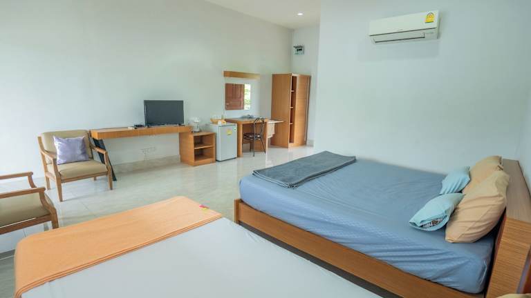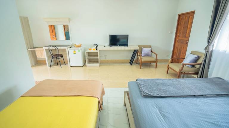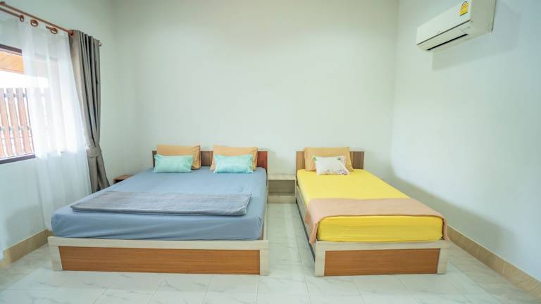 Jede Wohneinheit in der Unterkunft Ban Suan Bang Toei Homestay ist mit einem eigenen Badezimmer, einer Dusche, einer Klimaanlage, einem Flachbild-TV und einem Kühlschrank ausgestattet.