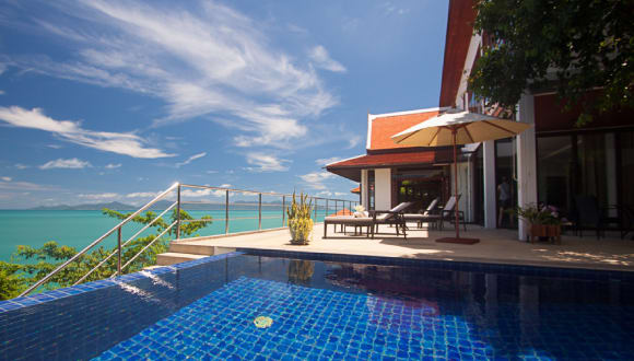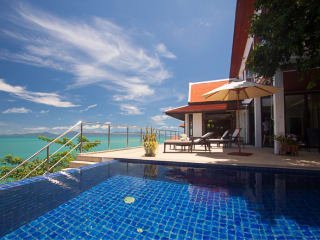Das Ferienhaus befindet sich im Norden von Koh Samui auf einem Hügel, ca. 45m über dem Meer, direkt am Bang Por Beach, mit nur einem Nachbarhaus in 20m Entfernung. Zur Hauptstrasse sowie zum Beach sind es ca. 5 Minuten zu Fuss. Es bietet Platz für max. 6 Personen. Es befinden sich mehrere kleine Restaurants sowie kleine Supermärkte in näherer Umgebung. Der nächste grössere Ort (Maenam) ist ca. 5 km entfernt. Im oberen Stockwerk befinden sich 3 Schlafzimmer (alle mit Klimaanlage + Ventilatoren) und jeweils eigenes angrenzendes Badezimmer. Bettwäsche und Handtücher sind ausreichen vorhanden. Im unteren Stockwerk sind Wohnzimmer (ausgestattet mit TV, DVD, ADSL-W-Lan), Esszimmer, Küche (kompl. ausgestattet) und eine Gästetoilette. Vom Wohnzimmer aus kommt man auf die Terrasse mit Swimming-Pool (mit Jacuzzi) Die Terrasse ist ausgestattet mit 6 Sonnenliegen. Sie haben eine wunderbare Aussicht übers Meer.