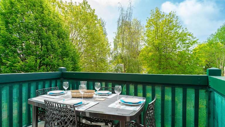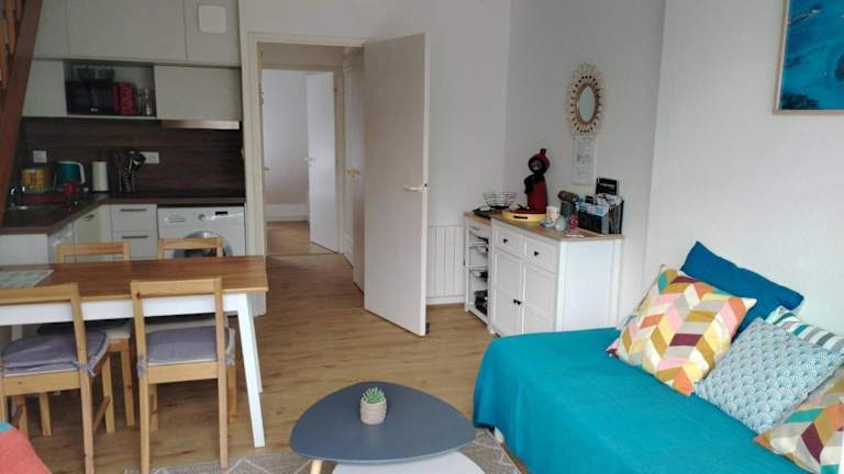 Die Unterkunft Bananec- Appt befindet sich in La Forêt-Fouesnant, nur 300 Meter von der Plage de Kerleven entfernt. Die Umgebung bietet zudem den Golfplatz Cornouaille in 1,4 km Entfernung sowie kulturelle Sehenswürdigkeiten, wie das Palais des Evêques de Quimper und das Musée Départemental Breton, beide in 18 km Entfernung. Der Bahnhof Quimper liegt 17 km entfernt.