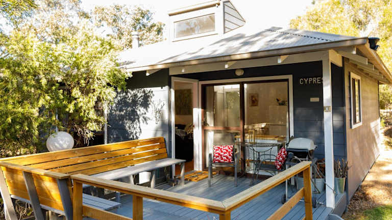 Bandalong Cottages bietet eine idyllische Umgebung mit einem Garten und einer Terrasse, wo Gäste die heimelige Atmosphäre geniessen können.