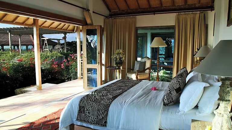 Die klimatisierten Bungalows sind elegant eingerichtet und verfügen über einen Flachbild-TV, eine Minibar sowie Kaffee- und Teezubehör. Das eigene Bad ist mit einer Dusche und einem Haartrockner ausgestattet. Von der Terrasse aus können die Gäste einen Blick auf das Meer und die umliegenden Berge geniessen.