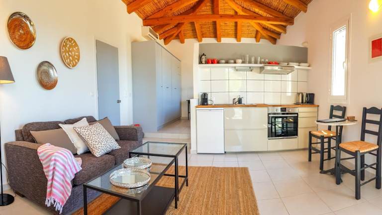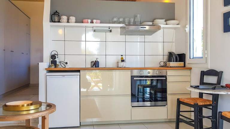 Die Villa besteht aus einem Schlafzimmer, einem Wohnzimmer und einer voll ausgestatteten Küche, die mit einem Kühlschrank und einer Kaffeemaschine ausgestattet ist. Ein Badezimmer mit Dusche und kostenlosen Pflegeprodukten ist ebenfalls vorhanden. Handtücher und Bettwäsche werden bereitgestellt.