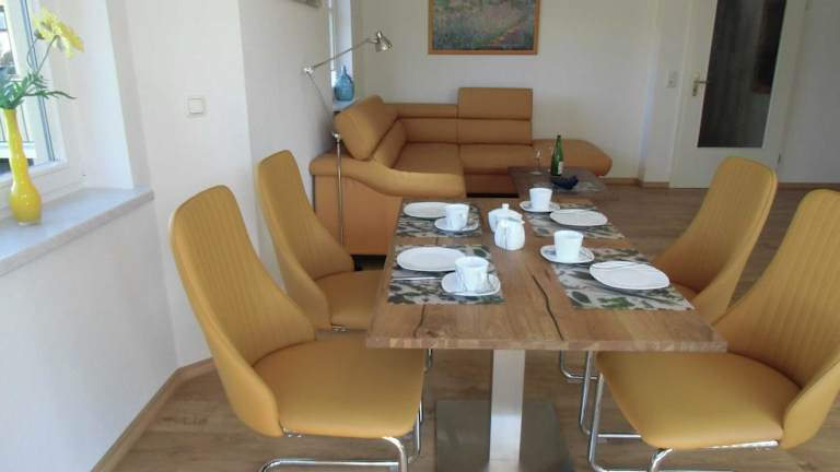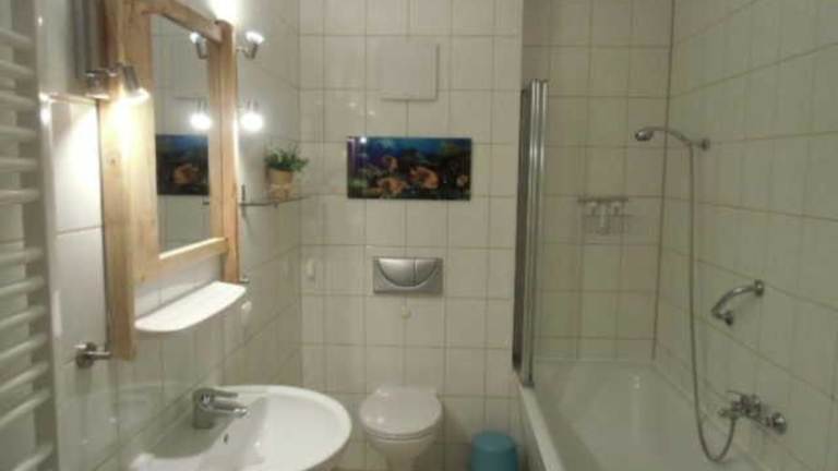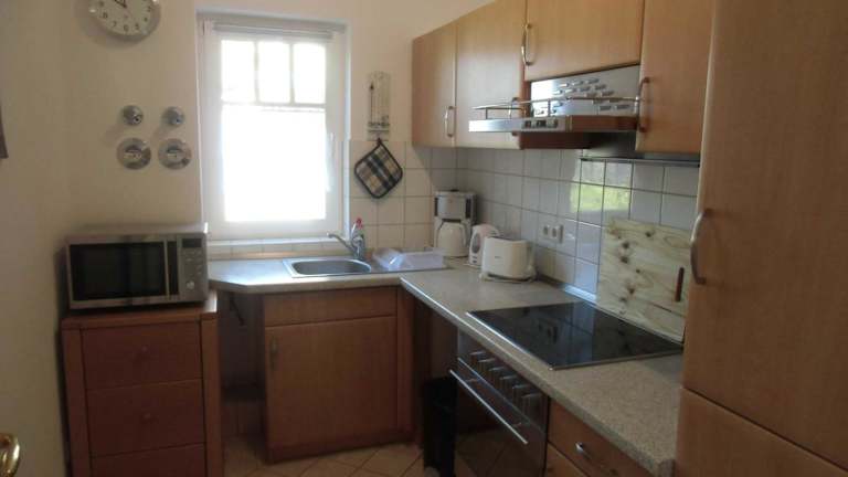 Die Ferienwohnung umfasst ein Schlafzimmer und ein Wohnzimmer. Eine voll ausgestattete Küche mit Kühlschrank und Kaffeemaschine bietet die Möglichkeit zur Selbstverpflegung. Zudem gibt es ein Badezimmer mit Badewanne und Haartrockner. Zur Unterhaltung steht ein Flachbild-TV mit Satellitenkanälen zur Verfügung.