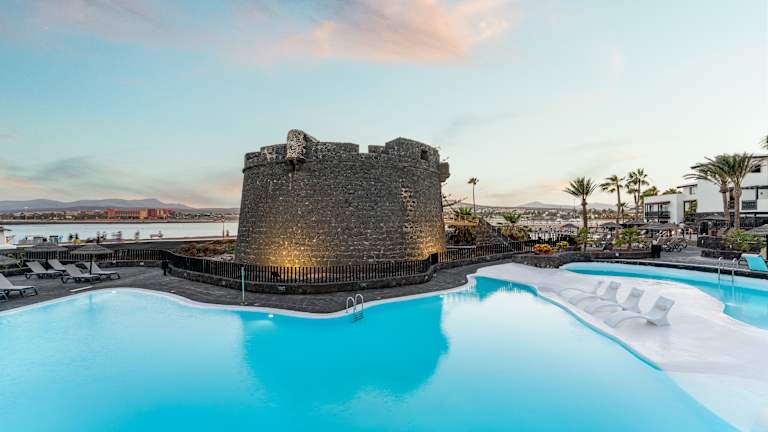 Wenn Sie sich in Ihrem Badeurlaub für das hervorragende 4-Sterne Hotel Barceló Fuerteventura Castillo entscheiden, befinden Sie sich verkehrsgünstig in Flughafennähe. Es zählt zu jenen Hotels in Spanien, die 2014 das Prädikat HolidayCheck Quality Selection verliehen bekommen haben. Zu Sehenswürdigkeiten wie zum Beispiel dem Hafen Caleta de Fuste sowie dem Strand Playa del Castillo sind es vom Haus aus höchstens zehn Minuten. Der Hafen Puerto del Rosario befindet sich in kurzer Fahrdistanz zu Ihrer Unterkunft.