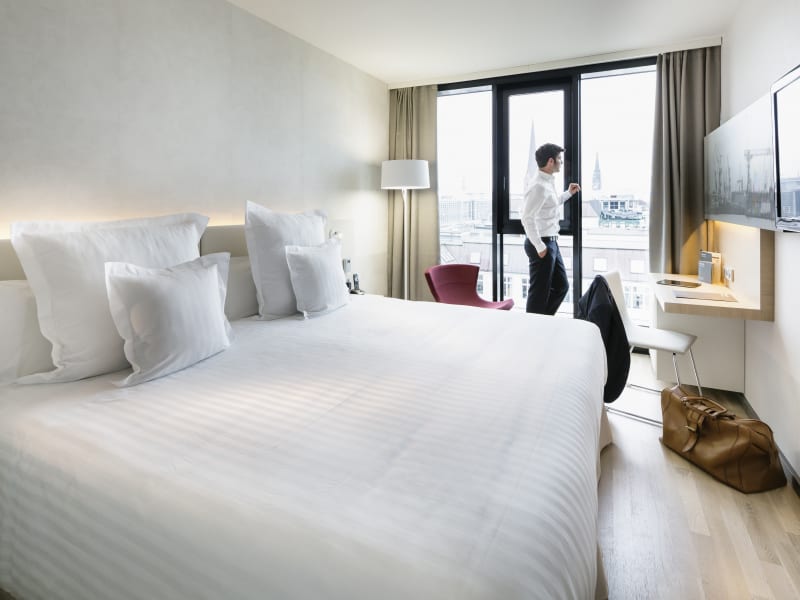 Ein Hotel kann niemals die Behaglichkeit ersetzen, die das eigene Zuhause ausmacht. Das Hotel Barceló Hamburg kommt ihr mit seinen 193 B-Rooms jedoch unvergleichlich nahe. Modern und komfortabel. Standards mit extravaganten Details. •Superior 24-29m² Erwarten Sie den hohen B-Room Standard und mehr, wie Minibar, iPhone Ladestation und Kaffee- und Teestation. Jedes Bad verfügt über Fußbodenheizung, Handtuchhalter und Schminkspiegel. •Deluxe 28-31m² Ergänzt um eine großzügig, perfekt ausgestattete Arbeitszone wird der Deluxe B-Rooms zum idealen Ort zum Arbeiten und Relaxen. •Junior Suite 41m² Die Junior Suite begeistert unter anderem mit einem großzügigen Arbeitsplatz, einem separatem Wohnbereich mit Sofa, zwei LCD-Fernsehern und einer Senseo Pad-Maschine. •Junior Suite Deluxe 46m² Erhaben und lichtdurchflutet. Die Junior Suiten Deluxe in der 9. Etage überzeugen mit einer kompletten Außenverglasung und einem Blick über die Dächer Hamburgs. •Suite Binnenalster 50m² Repräsentativ und einzigartig. Die Binnenalster-Suite verwöhnt mit Ausblicken über die Stadt, sowie Außen- und Binnenalster. Inklusive viel Raum, zum Wohnen und Arbeiten.