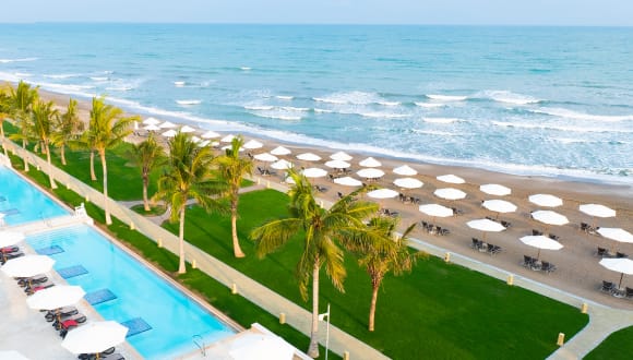Barcelo Mussanah Resort is one of Oman’s leading beachfront hotels and a gateway renowned for relaxation and recreation, surrounded by tranquil views of its very own marina, the Gulf of Oman, and the Al Hajar Mountains. The lifestyle destination resort is just 45 minutes from Muscat International Airport and close to the neighbouring cities of Barka and Sohar. With panoramic views of the sea, the resort has something for everyone and caters to seafaring guests with a private 54-berth marina, conferencing facilities for discerning business visitors, offers a diverse range of sports activities for leisure travellers and luxurious pools with exclusive beach access for holidaymakers. Guests can relax in idyllic surroundings and take in all of the spectacular natural beauty that the Sultanate of Oman has to offer. Barcelo Mussanah Resort features 234 spacious hotel rooms in a range of options to suit every need including Deluxe, Executive, and Junior Suites, 74 fully-furnished serviced apartments comprising of studios, one-bedroom, and two-bedroom duplex apartments. Each room offers impressive views of the Al Hajar Mountains, the Marina, or the Gulf of Oman. The resort also offers a choice of culinary options including a poolside bar open until sunset, two more modern bars, an à la carte restaurant, and a welcoming buffet all with private terraces facing the sea.