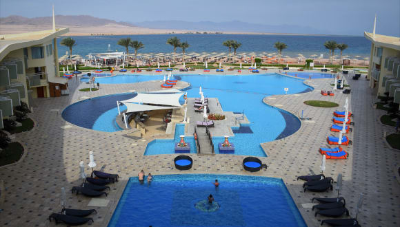 Das Barceló Tiran Sharm Resort befindet sich in Nabq Bay, in Sharm el Sheikh, ca. 17 km entfernt vom internationalen Flughafen. Der hoteleigene Strand, der mit Sonnenschirmen und Liegen ausgestattet ist, liegt etwa 2 km vom Resort entfernt. Das Stadtzentrum von Sharm el Sheikh erreicht man nach ca. 25 km.