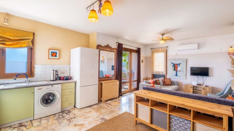 Das Apartment besteht aus 1 Schlafzimmer, einem Wohnzimmer und einer voll ausgestatteten Küche mit Kühlschrank und Wasserkocher. Das Badezimmer ist mit einer Dusche und kostenlosen Pflegeprodukten ausgestattet. Handtücher und Bettwäsche werden bereitgestellt. Es gibt eine Veranda oder einen Patio, um die Aussicht zu geniessen.