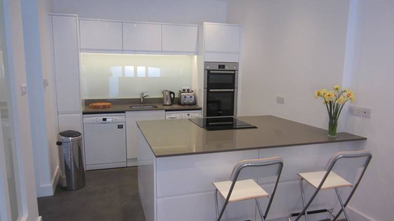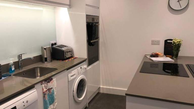 Die Ferienwohnung verfügt über ein Schlafzimmer und bietet eine Küche mit Kühlschrank und Geschirrspüler. Des Weiteren gibt es einen Flachbild-TV, einen Sitzbereich und ein Badezimmer mit Dusche. Handtücher und Bettwäsche werden ebenfalls zur Verfügung gestellt.