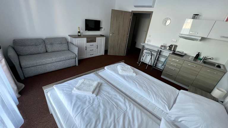 Die Unterkunft BASELINE športový areál & penzión ist eine Nichtraucherpension, die einen einladenden Garten und eine Bar bietet. Die Pension verfügt über ein Familienzimmer und ist darauf ausgelegt, den Gästen eine entspannte Atmosphäre zu bieten.