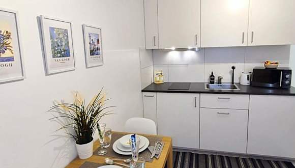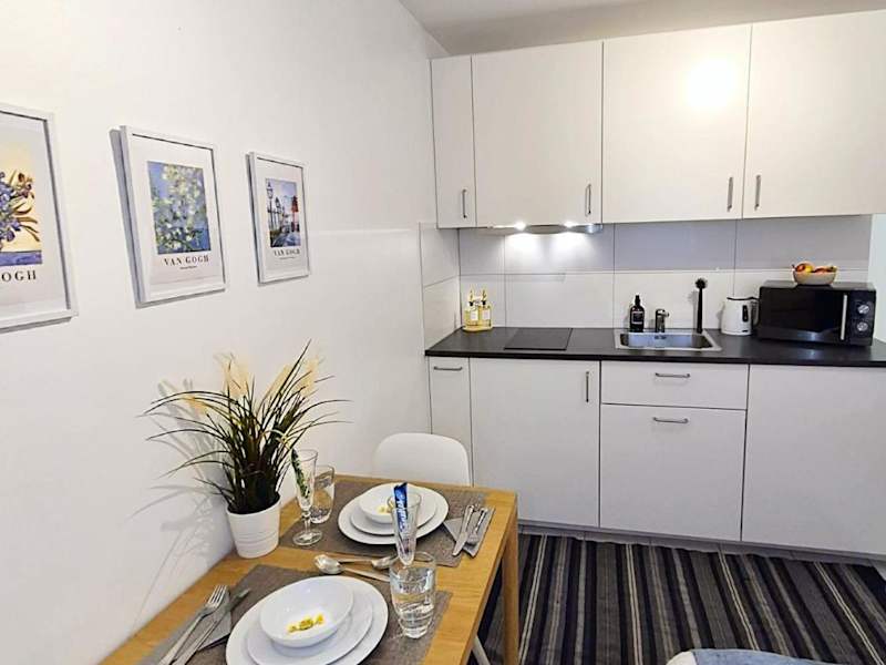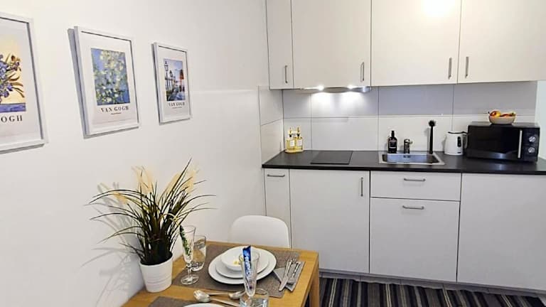 Das Studio verfügt über 1 Schlafzimmer, eine gut ausgestattete Küche mit Kühlschrank und Ofen sowie ein Badezimmer mit Dusche und kostenlosen Pflegeprodukten. Handtücher und Bettwäsche werden bereitgestellt. Die Unterkunft bietet eine Nichtraucherumgebung und stellt sicher, dass die hygienischen Standards entsprechend den Richtlinien der Behörden eingehalten werden.
