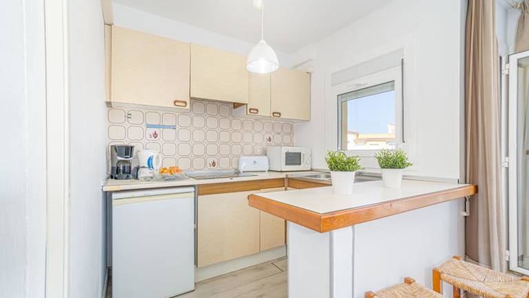 Eine voll ausgestattete Küchenzeile ermöglicht die Selbstversorgung mit einem Kühlschrank und einer Kaffeemaschine. Für zusätzlichen Komfort können Bettwäsche und Handtücher gegen Aufpreis bereitgestellt werden.