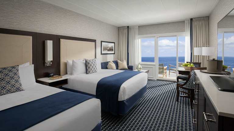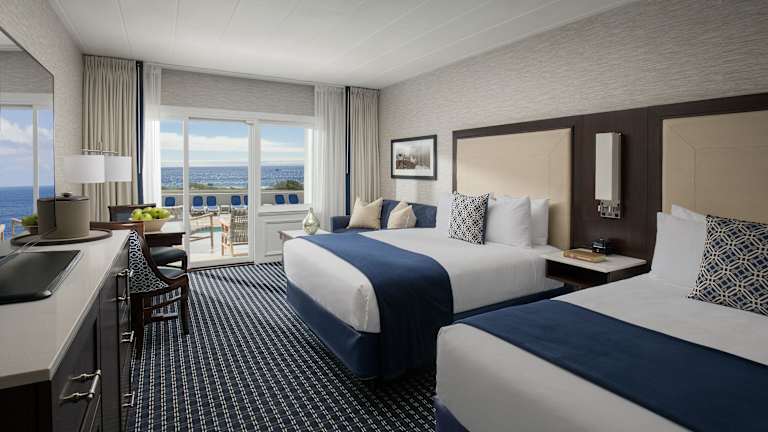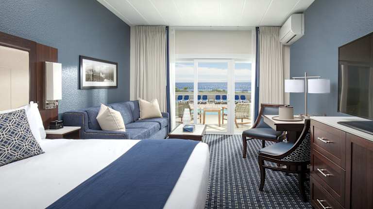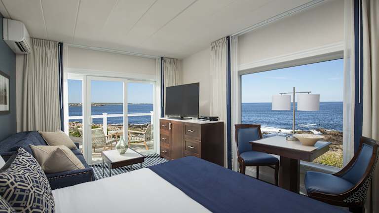 Die Zimmer sind ausgestattet mit Klimaanlage, Heizung, einem Balkon oder einer Terrasse mit Meerblick. Die Einrichtung umfasst ein Queensize- oder Kingsize-Bett, einen Kühlschrank, eine Mikrowelle sowie eine Tee-/Kaffeestation. Unter den Annehmlichkeiten sind auch ein TV-Gerät mit Satelliten-/Kabelempfang, ein CD- und DVD-Player sowie kostenfreies Wifi. Die Badezimmer verfügen über eine Dusche und sind mit Kosmetikartikeln ausgestattet.