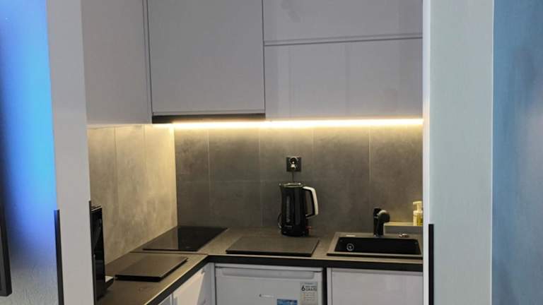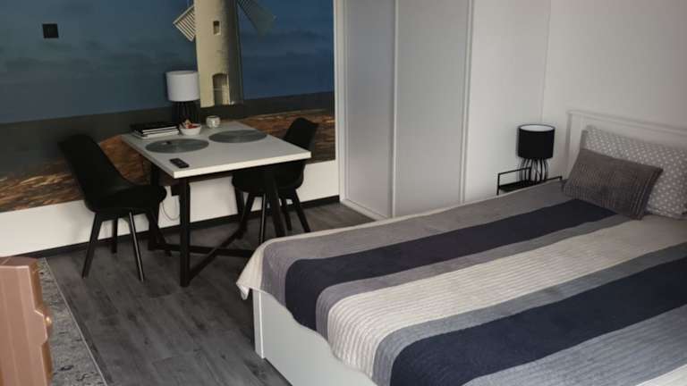Das Privatzimmer umfasst 1 Schlafzimmer und ein Wohnzimmer. Eine voll ausgestattete Küchenzeile ist vorhanden, die einen Kühlschrank und eine Kaffeemaschine beinhaltet. Das Badezimmer verfügt über eine Dusche und kostenlose Pflegeprodukte. Handtücher und Bettwäsche werden bereitgestellt. Die Unterkunft ist klimatisiert und bietet allergikerfreundliche Zimmer. Zudem sind Nichtraucherzimmer verfügbar, und Haustiere sind erlaubt.