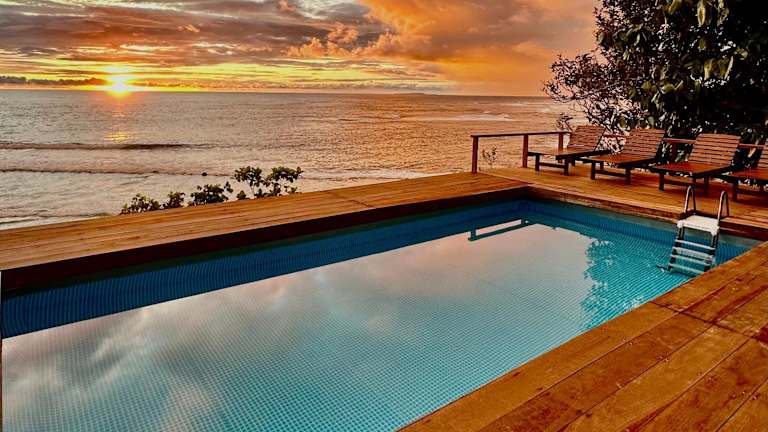 Die Unterkunft BatuRundung Surf Resort befindet sich an der Jalan Tengku Diujung in Desa Angkeo. Der Standort bietet direkten Blick auf den Strand und ermöglicht es Gästen, die Schönheit des Meeres und der Natur zu geniessen.