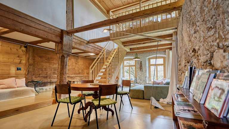 Die Baudenkmal Mühle Schalchen bietet eine behagliche Ferienwohnung mit Klimaanlage und umfasst zwei Schlafzimmer sowie ein Wohnzimmer. Sie verfügt über eine Veranda bzw. ein Patio und einen Garten mit Terrasse, der einen Blick auf die Umgebung bietet. Zudem ist die Unterkunft komplett rauchfrei und wird von einem privaten Gastgeber geführt.