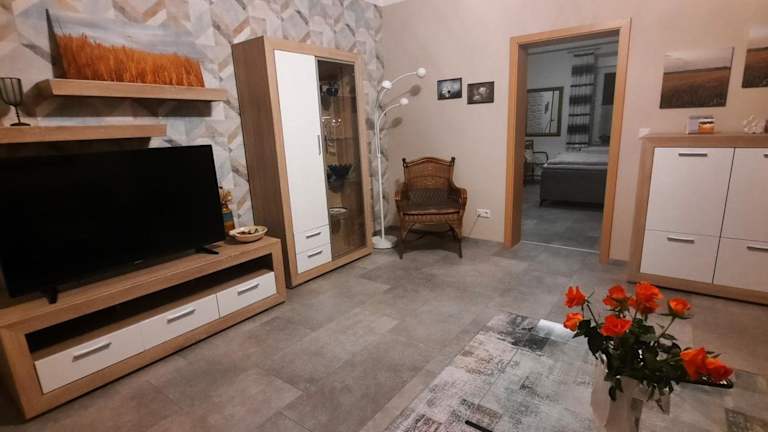 Die Ferienwohnung umfasst ein Schlafzimmer, ein Wohnzimmer sowie eine gut ausgestattete Küche mit Kühlschrank und Geschirrspüler. Des Weiteren bietet sie ein Badezimmer mit Dusche, einen Flachbild-TV und stellt Handtücher sowie Bettwäsche zur Verfügung.