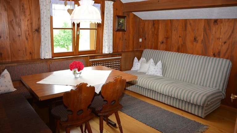 Die Ferienwohnung besteht aus zwei Schlafzimmern, einem Wohnzimmer sowie einer voll ausgestatteten Küchenzeile. Diese ist eingerichtet mit einem Kühlschrank und einer Kaffeemaschine. Zudem verfügt die Wohnung über ein Badezimmer mit Dusche und Hausschuhen. Handtücher und Bettwäsche werden zur Verfügung gestellt.