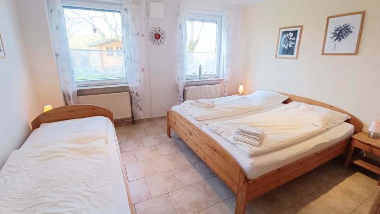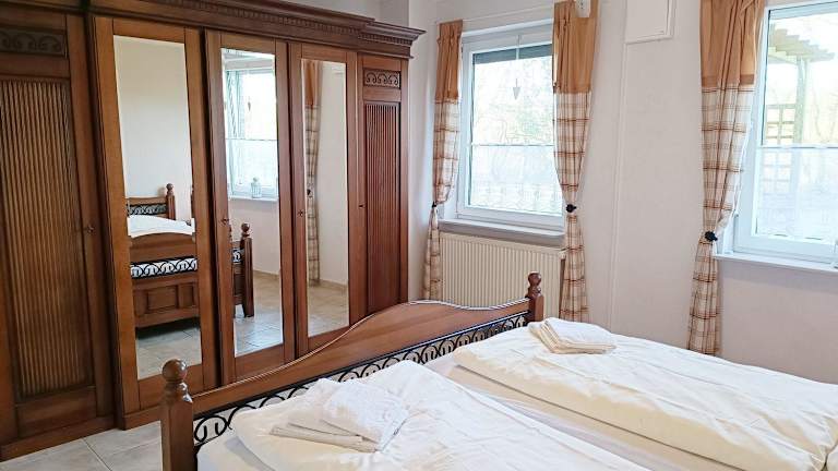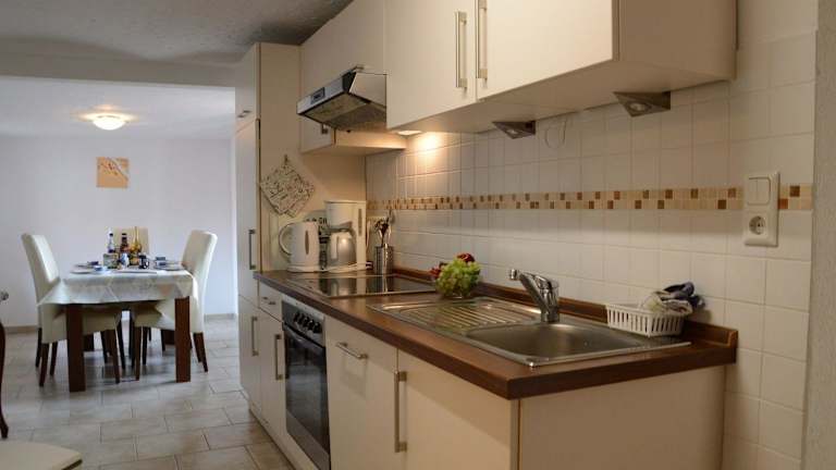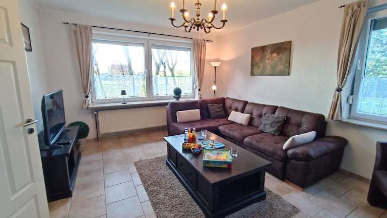 Die Ferienwohnung umfasst 2 Schlafzimmer und ist ausgestattet mit einem TV sowie einer voll ausgestatteten Küchenzeile. Diese beinhaltet einen Geschirrspüler, einen Ofen, eine Waschmaschine, eine Mikrowelle und eine Herdplatte.