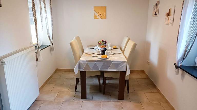 Die Unterkunft Bauernstube - Landhaus Haan befindet sich in Norddeich, nur 1,8 km vom Strand von Norddeich entfernt. Der Bahnhof Norddeich liegt lediglich 1 km von der Unterkunft entfernt.
