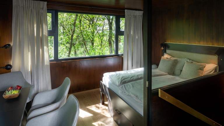Die Suiten in der Baumhaus Lodge Schrems sind modern und komfortabel eingerichtet. Jede Suite verfügt über einen möblierten Balkon oder eine Terrasse, einen privaten Eingang, einen Essbereich, einen Kühlschrank, einen Sitzbereich und ein eigenes Badezimmer mit Dusche und kostenlosen Pflegeprodukten. Die Zimmer bieten somit allen Komfort, den man für einen entspannten Aufenthalt benötigt.