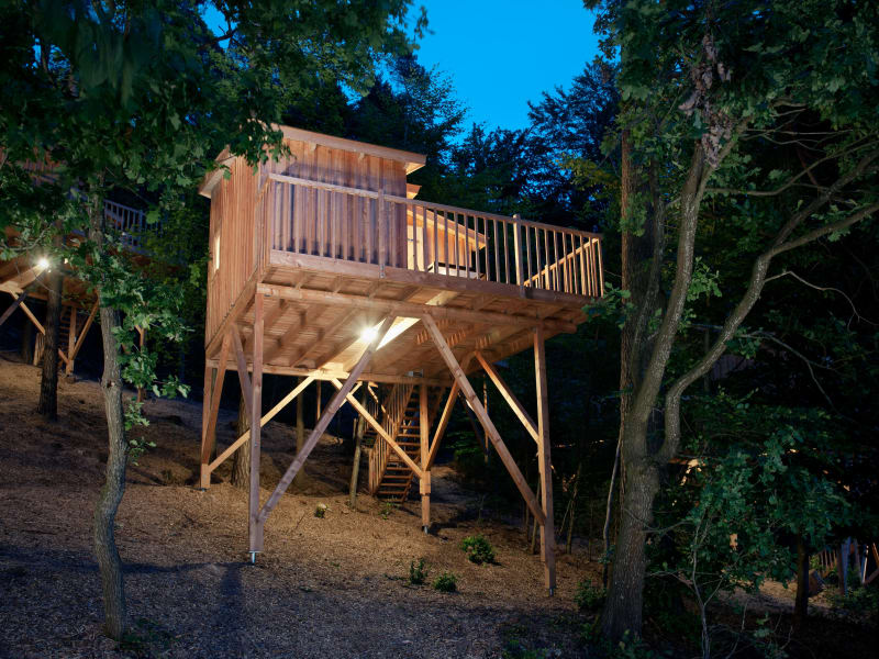 Die Hotelanlage besteht aus 7 einzelnen Baumhäusern, die an der höchsten Stelle etwa fünf Meter hoch auf Stelzen stehen, am Rande eines Kiefernmischwaldes.