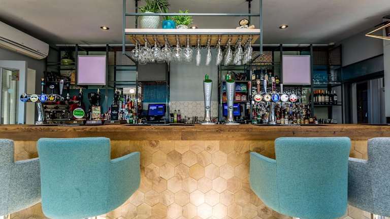 Das beliebte Lodge Bar and Kitchen serviert im modernen Speiseraum traditionelle Pubgerichte sowie leichte Snacks. Erfrischungen und Heissgetränke können auch auf der grossen Gartenterrasse genossen werden. Es werden zudem kinderfreundliche Mahlzeiten angeboten.
