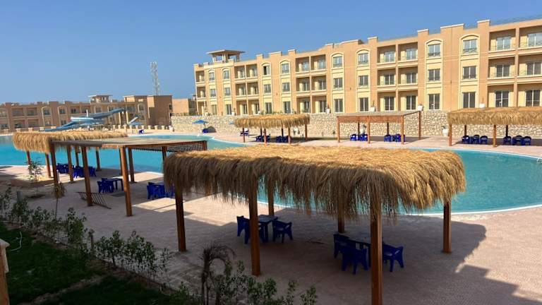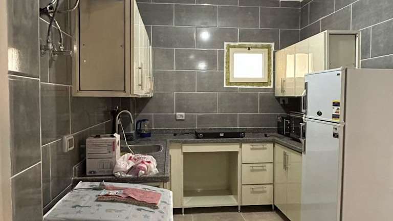 Bay View Apartment Sahl hasheesh bietet einen Garten und Klimaanlage sowie eine Terrasse mit Poolblick. Es handelt sich um eine Ferienwohnung, die über drei Schlafzimmer, ein Wohnzimmer, zwei Badezimmer und eine gut ausgestattete Küche verfügt. Zu den Annehmlichkeiten gehören ein Innenpool und ein Kinderspielplatz. Die Unterkunft ist familienfreundlich und bietet Zugang zu Nichtraucherzimmern und allergikerfreundlichen Bereichen.