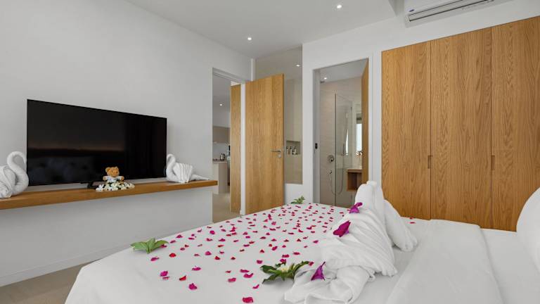 Die klimatisierten Zimmer umfassen einen Deckenventilator, einen Safe und ein eigenes Bad mit Regendusche. Pflegeprodukte und Handtücher werden gestellt. Die Villa bietet zudem schallisolierte Zimmer und einen privaten Zugang.
