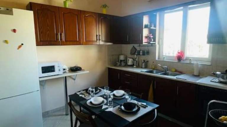 Die Unterkunft umfasst zwei Schlafzimmer, ein Wohnzimmer, eine voll ausgestattete Küche mit Kühlschrank und Kaffeemaschine sowie ein Badezimmer mit Dusche und kostenlosen Pflegeprodukten. Handtücher und Bettwäsche sind ebenfalls verfügbar.