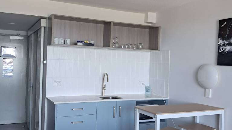 Die Zimmer sind mit Klimaanlage und Heizung ausgestattet und verfügen über einen Balkon oder eine Terrasse mit Blick auf das Meer und die Keppelinseln. Jedes Zimmer beinhaltet eine Kochnische mit Kühlschrank sowie Tee- und Kaffeezubehör. Die Zimmer verfügen zudem über ein eigenes Bad mit Haartrockner, ein TV-Gerät und kostenloses Wifi. Es sind Nichtraucher- und Familienzimmer verfügbar, sowie rollstuhlgerechte Zimmer.