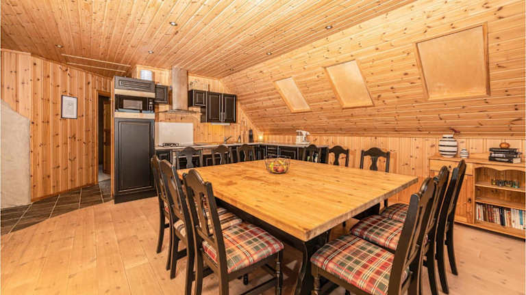 Das Ferienhaus beinhaltet ein Wohnzimmer mit TV und Kabelkanälen, eine voll ausgestattete Küche mit Kühlschrank und Geschirrspüler sowie 4 Badezimmer mit Dusche.