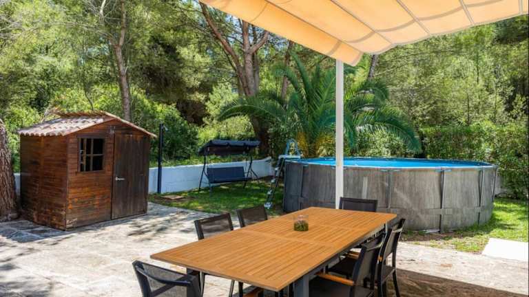 Das Ferienhaus verfügt über vier Schlafzimmer, zwei Badezimmer, Bettwäsche und Handtücher. Ausgestattet ist es mit einem TV, einem Essbereich, einer voll ausgestatteten Küche sowie einer Terrasse mit Poolblick. WLAN und Klimaanlage sind vorhanden.