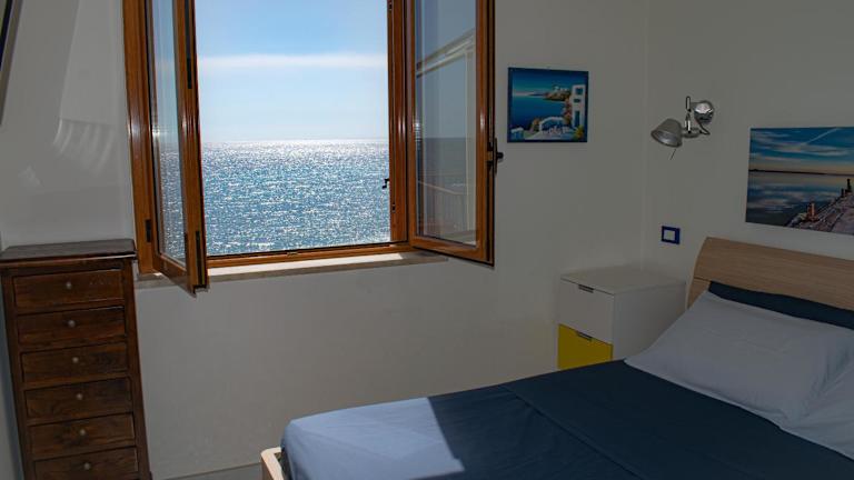 Die Ferienwohnung verfügt über zwei Schlafzimmer, ein Badezimmer, einen Essbereich und eine voll ausgestattete Küche. Ausstattungselemente wie Bettwäsche, Handtücher sowie ein Flachbild-TV sind vorhanden. Zudem gibt es eine Terrasse mit Meerblick.