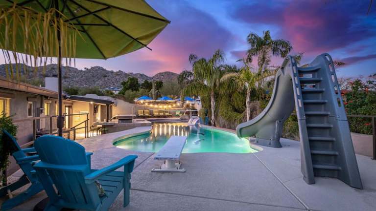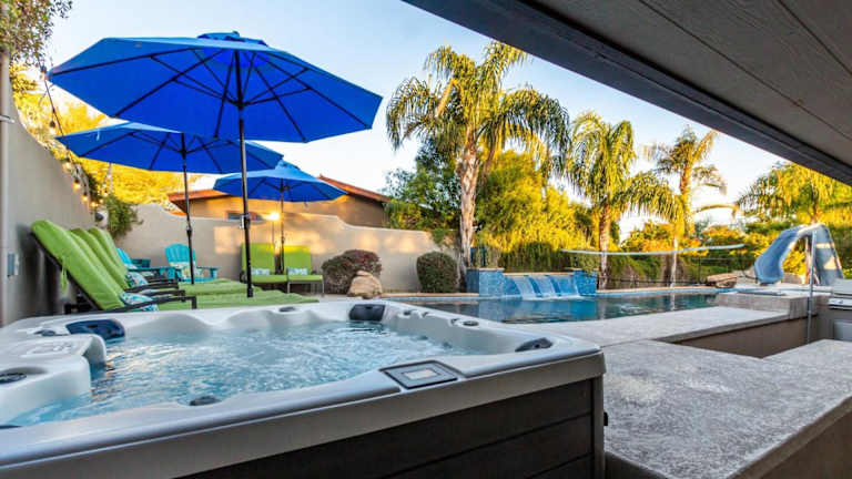 Das Beach House Feel in the Desert Family Mini Resort 2932 bietet klimatisierte Übernachtungsmöglichkeiten mit eigenem Pool und einer voll ausgestatteten Küche. Die Unterkunft gewährleistet einen angenehmen Aufenthalt mit Bettwäsche und Handtüchern.