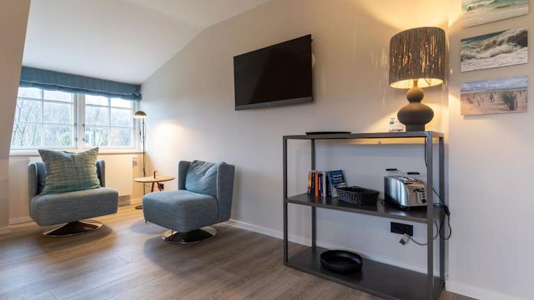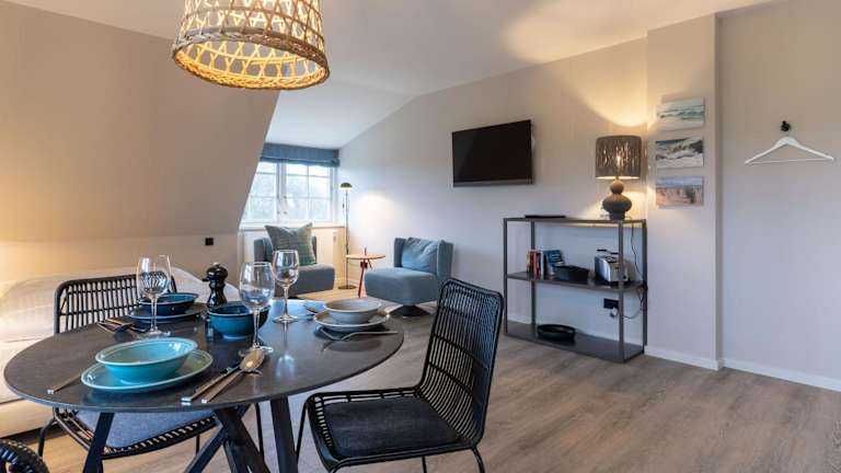 Beach Lodge Beach Lodge Appartement 8 bietet ein angenehmes Wohnzimmer mit TV und kostenlosem WLAN. Die Unterkunft zeichnet sich durch eine Terrasse sowie einen kostenlosen Privatparkplatz aus. Gäste können eine Sauna nutzen.