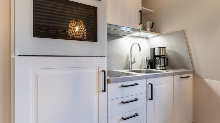 Die Unterkunft verfügt über eine Küche, die mit einem Kühlschrank, Geschirrspüler, Ofen, Kaffeemaschine und Wasserkocher ausgestattet ist.
