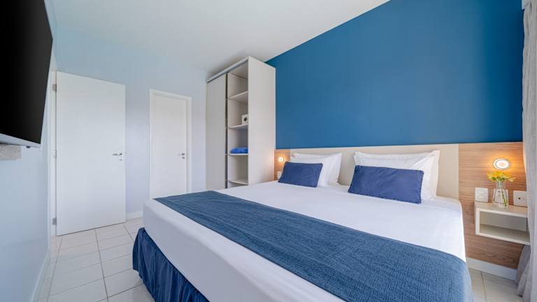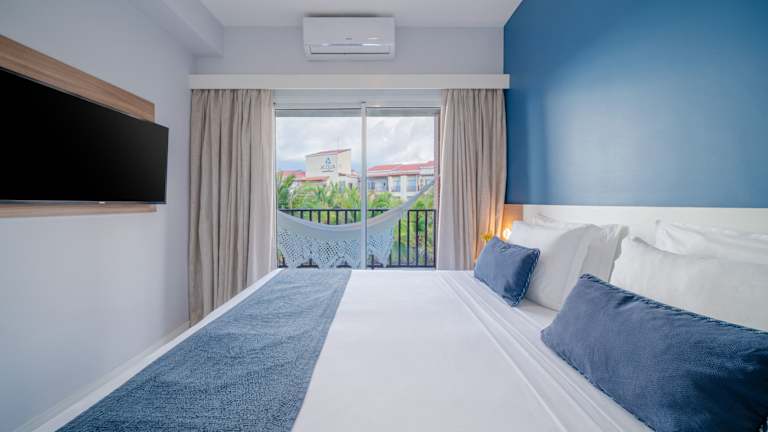 Die Zimmer sind mit Klimaanlage, TV, Minibar und teilweise mit Balkon oder Terrasse ausgestattet, die einen Blick auf das Meer bieten. Der Standard umfasst ein Kingsizebett, ein Sofabett sowie ein Badezimmer mit Dusche und Badewanne, Haartrockner und Kosmetikartikeln. Rollstuhlgerechte Zimmer sind verfügbar.