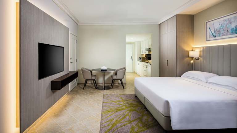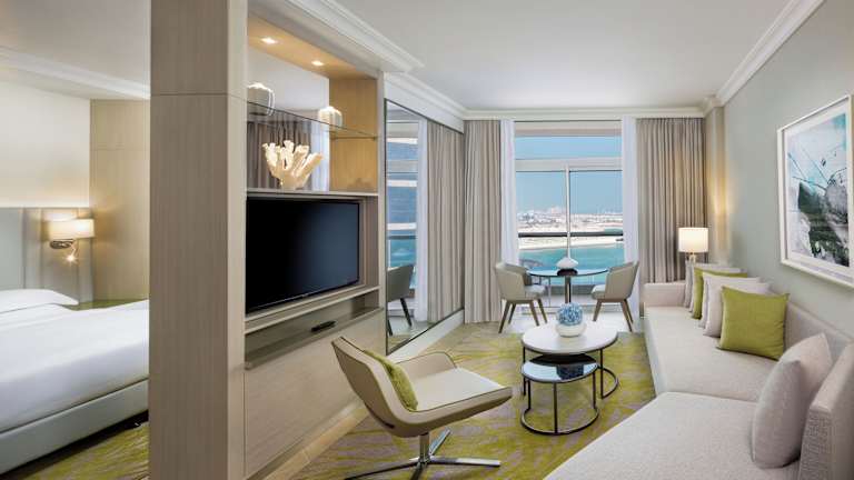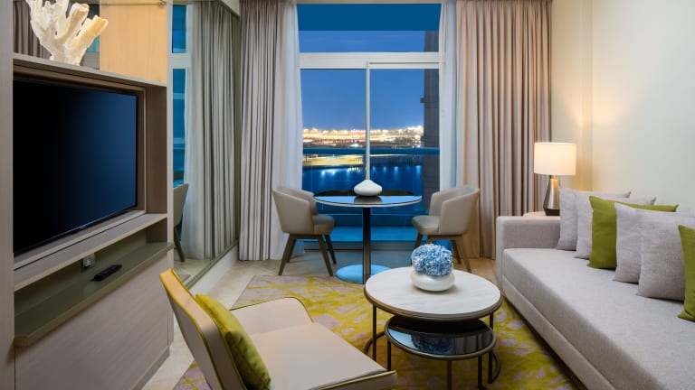 Das Beach Rotana – All Suites ist ein elegantes Hotel, das Teil des Beach Rotana Komplexes ist und 152 voll möblierte Hotelapartments mit Küchen und geräumigen Schnitten bietet. Die Unterkunft bietet ein freundliches Personal, das bei Fragen behilflich ist, sowie verschiedene Einrichtungen wie einen Garten, einen Spielplatz, einen TV-Raum und ein Spielzimmer. Für Gäste, die mit dem Auto anreisen, stehen Parkiermöglichkeiten in einer Garage oder auf einem Parkplatz zur Verfügung.