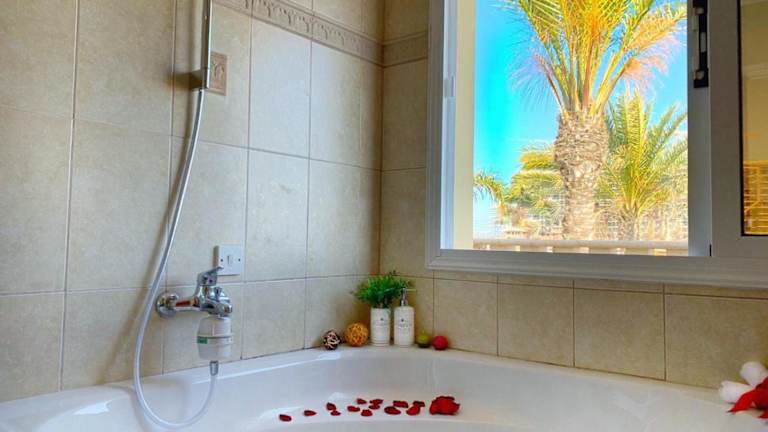In der Beach Villa Sea View, XXL Pool, 4 Bedroom können Sie sich im Garten entspannen und die Sonne genießen. Die Strände Agia Thekla, Liopetri und Makronissos 1 sind nur einen kurzen Spaziergang entfernt und bieten verschiedene Wassersportmöglichkeiten wie Schnorcheln, Tauchen und Jet-Ski. Der Wasserpark WaterWorld Ayia Napa ist auch in der Nähe und bietet Spaß für die ganze Familie.